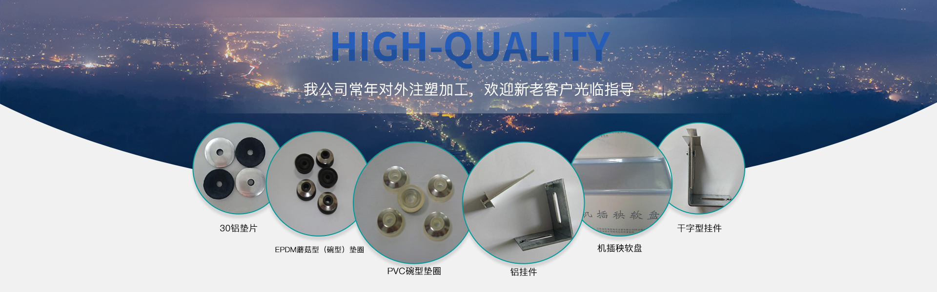 連云港市東??h正品五金有限公司是一家專(zhuān)業(yè)生產(chǎn)EPDM防水墊圈(陽(yáng)光板專(zhuān)用),幕墻掛件和機插秧專(zhuān)用軟盤(pán)的生產(chǎn)廠(chǎng)家,公司主要生產(chǎn):陽(yáng)光板專(zhuān)用墊圈,碗型組合墊圈,EPDM墊圈,合金鋁組合墊圈,防雨帽,馬鞍蓋,大蓋帽三件套,幕墻掛件,干字型掛件,水稻育秧塑盤(pán),各種塑料托盤(pán),對外注塑加工等,公司以質(zhì)量,誠信微利贏(yíng)得市場(chǎng),公司不斷引進(jìn)最新的生產(chǎn)工藝、最先進(jìn)的生產(chǎn)設備及先進(jìn)的檢測儀器,并致力于培訓工程、技術(shù)、品質(zhì)及管理人員;同時(shí)按ISO9001:2008版標準,在公司范圍內建立和運行質(zhì)量保證體系,...